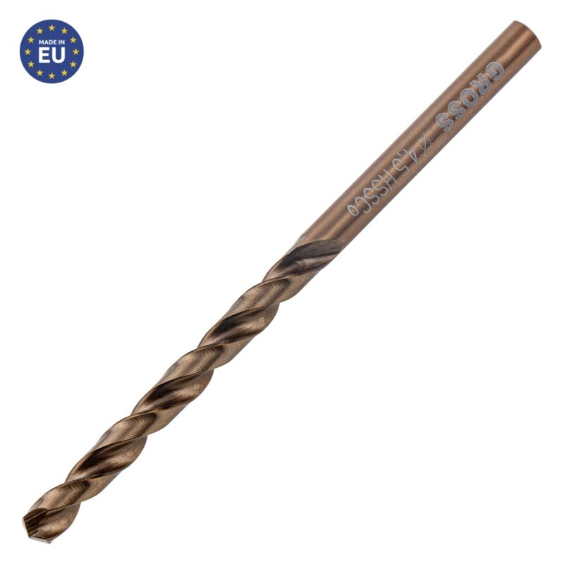 GROSS - Punta elicoidale per metallo HSS Cobalto - 4,5 x 80 mm Punta elicoidale per metallo in acciaio HSS e cobalto. Perforazione efficiente, alta resistenza e maggiore durata. Forare non è mai stato così semplice! Le punte elicoidali GROSS sono progettate per garantire una perforazione efficiente del metallo e di altri materiali (acciaio legato e non legato, ghisa, leghe non ferrose e plastica dura). Consentono di realizzare forature di qualità, in modo semplice ed efficiente. La loro progettazione assicura durata e resistenza senza pari. Efficienza e prestazioni Le punte HSS Cobalto sono progettate per effettuare forature con precisione. Il loro angolo di affilatura di 135° è ottimale per il lavoro con il metallo. Il profilo delle punte e la loro superficie lucida consentono un'ottima evacuazione dei trucioli di perforazione e quindi prestazioni migliorate, costantemente. Resistenza e durata La composizione in acciaio HSS e cobalto (5%) consente un utilizzo intensivo senza perdita