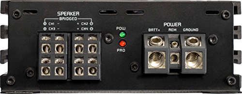 Amplificatore a 4 canali, classe AB, 4 x 80 WRMS @ 4 ohm, 4 x 130 WRMS @ 2 ohm.