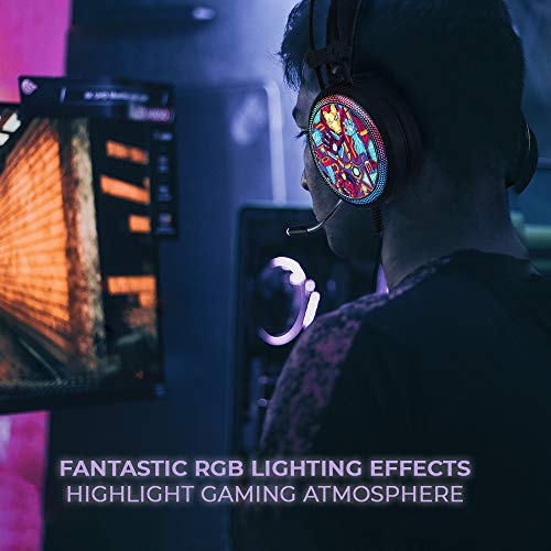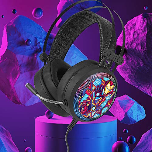 Ert Group Cuffie da gioco con microfono, Cuffie LED con archetto regolabile Modello Marvel originale e con licenza ufficiale Iron Man 002
