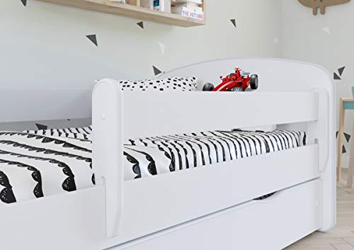 WFL GROUP Letto Bianco per Bambini con Materasso Incluso 70x140 80x160 80x180 cm Letto Bambini con Barriera di Protezione, Doghe e Cassetto Removibile - per Bambino e Bambina - Formula- 160x80