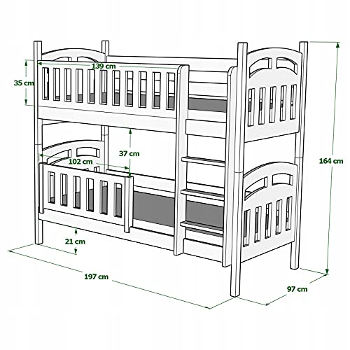 LETTI A CASTELLO IN LEGNO MASSICCIO - Costruzione in legno robusto (telaio, scaletta) + testiera in robusto MDF e ringhiera di sicurezza. Due cassetti inclusi. Si adatta perfettamente in qualsiasi camera. Materassi non inclusi, adatto per 80x160, 80x180, 90x190 e 90x200 materassi cm.