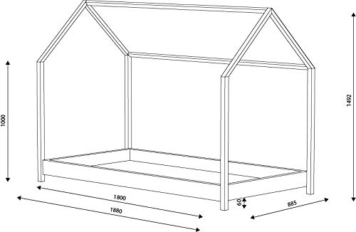 WFL GROUP Letto Montessori design a Casetta 90x200 80x180x160 - Letto a Capanna per Bambini - Per Bambini e Bambine - Legno di Pino naturale - Bianco - 180x80