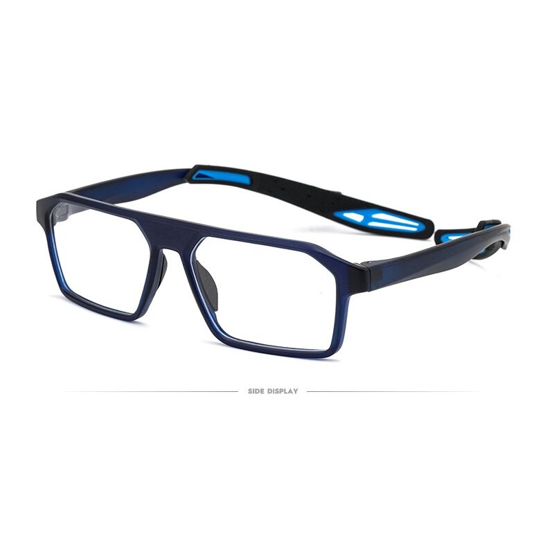 Misura (mm): Larghezza cornice (singola): 56 Larghezza del ponte nasale: 18 Altezza telaio: 36 Templi removibili ed estesi: Questa montatura è dotata di aste staccabili, che consentono di utilizzarla al meglio nella vita e nello sport, senza timore di cadute o inconvenienti. Può essere utilizzato in una varietà di ambienti, quindi non preoccuparti di abbattere con il sudore. Design sportivo: La montatura sportiva ha linee piene ed è confortevole al tatto, e c'è anche un nasello in silicone integrato. I collegamenti nascosti sono preferiti per proteggere la tua sicurezza Puoi scegliere tra una varietà di colori. Nero, blu, nero e nero e grigio sono le prime scelte degli sportivi. Questi sono anche i colori più popolari che vendiamo. Questi colori sono resistenti allo sporco e facili da pulire. Materiale ultraleggero: La combinazione di TR90 e silicone significa che questo paio di occhiali pesa solo 25 grammi. È molto leggero quando lo porti. Ti fa sembrare pesante, ma non c'è nessun