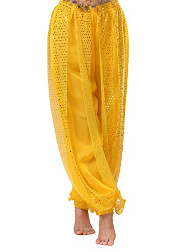 Grouptap Bollywood Indiano bharatanatyam Danza del Ventre Giallo 2 Pezzi Costume Costume Vestito per Donna Ragazze Ballerino Adulto (150-170 cm, 30-60 kg) (Giallo)
