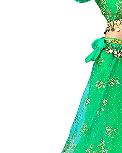 Grouptap Bollywood Indiano Donna Manica Lunga Anarkali Lehenga Choli Saree Abito Verde Arabo Principessa Danza del Ventre Gonna Abiti Costume (Verde, 150-170 cm, 45-70 kg)