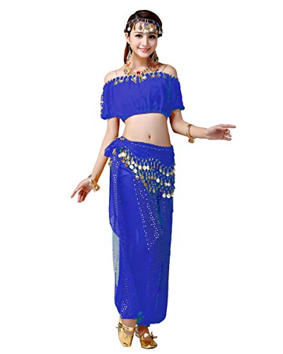 Grouptap Danza araba Donne danzatrice del Ventre Bollywood India Signora Abito da Spalla Costume da Festa Blu Fantasia Vestito per Ragazze arabe per Adulti (Blu, EU 34-38, 150-170 cm)