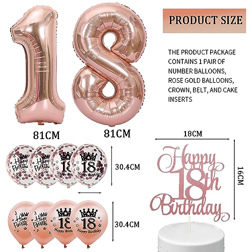 GROVBLE Palloncini 18 Anni Compleanno, Set di decorazioni per addio al nubilato, corona di compleanno per ragazza del 18° compleanno, palloncini in oro rosa di buon compleanno decorazione (bb)