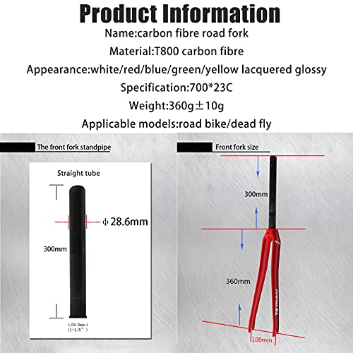 GRTE Forcella da Bicicletta Diritte in Fibra di Carbonio T800, Forcella Freno C, 28,6 Mm / 1-1/8"* 700 * 23C Forcella Rigida Leggera per Bici da Corsa Ciclismo Bici da Strada,Verde,28.6 * 700 * 23C