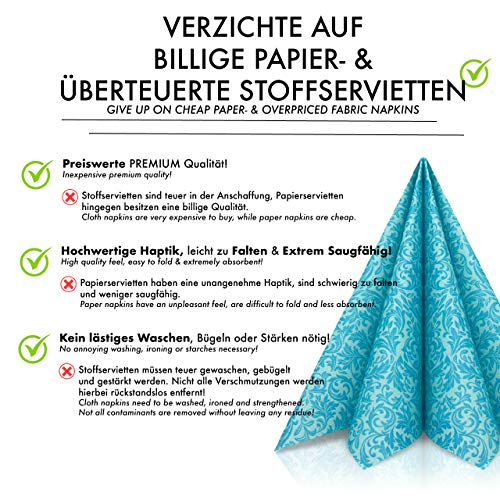 GRUBly tovaglioli di Carta in Turchese - Tovaglioli Carta Resistenti Come tovaglioli Stoffa da tavola - Perfetti per Ogni Cerimonia - Tovaglioli Colorati 40 x 40 - qualità Airlaid - Pacco da 50