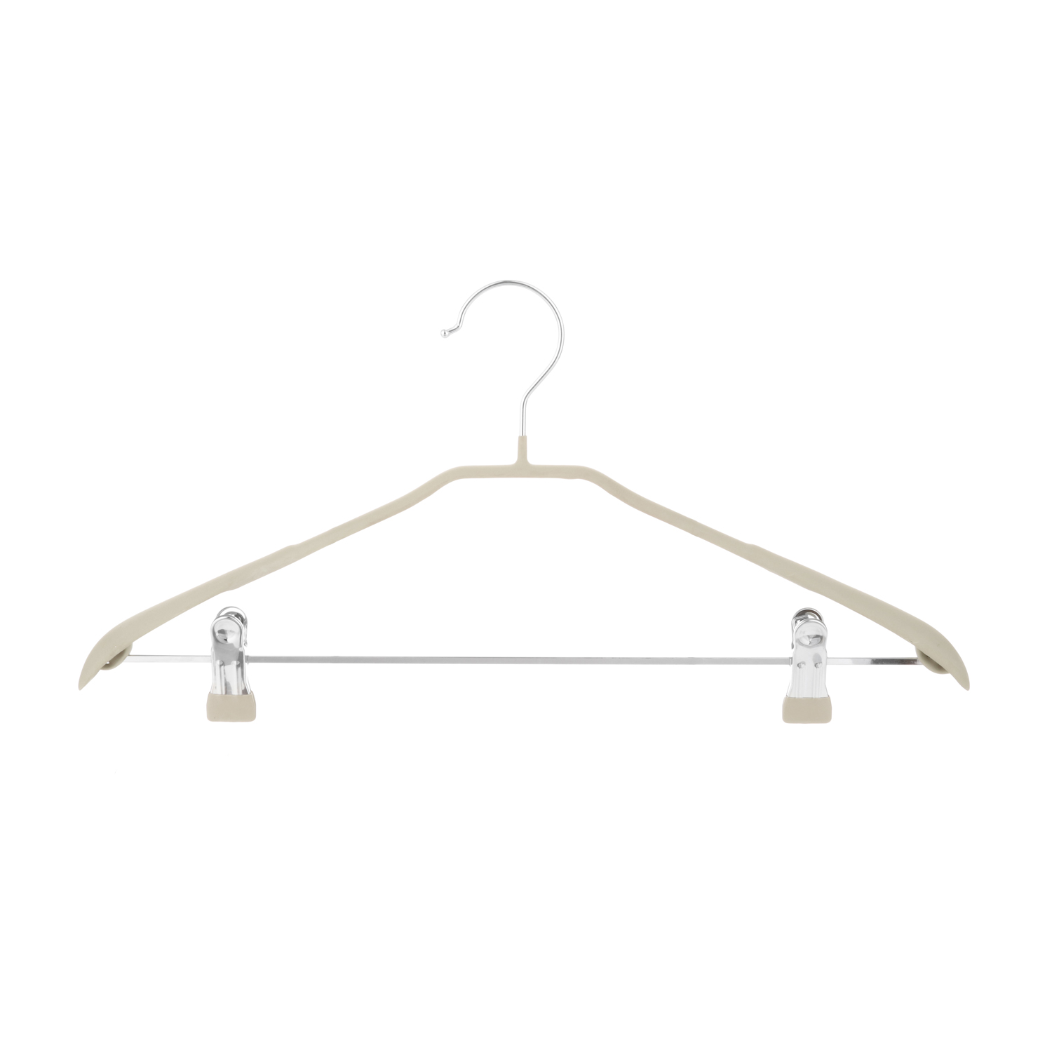 Comoda gruccia per tenere i vestiti nell'armadio in ordine. Realizzata in metallo con rivestimento soft touch, è adatta sia per appendere magliette e camicie che per vestiti lunghi, giacche e anche pantaloni. Le due pratiche pinze permettono di appendere anche gonne e pantaloncini. Pratica e resistente, si appende facilmente all'asta interna di guardaroba e armadi.