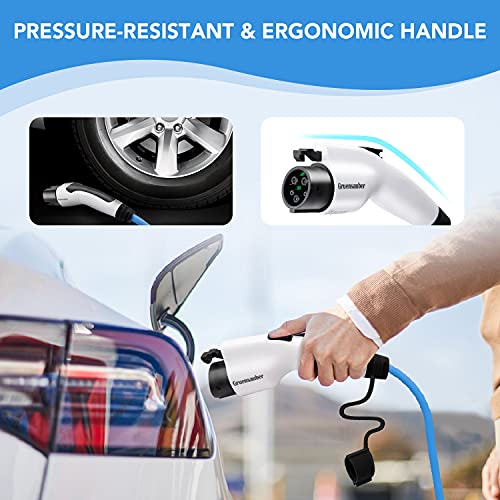 Materiali di alta qualità: il manico dal design ergonomico è realizzato in plastica termoplastica e può sopportare una caduta di altezza di 1 metro e una pressione di rotolamento di 2 tonnellate del veicolo. Dotato della pratica borsa per il trasporto, il cavo di ricarica resistente ev e phev può essere trasportato e riposto comodamente.