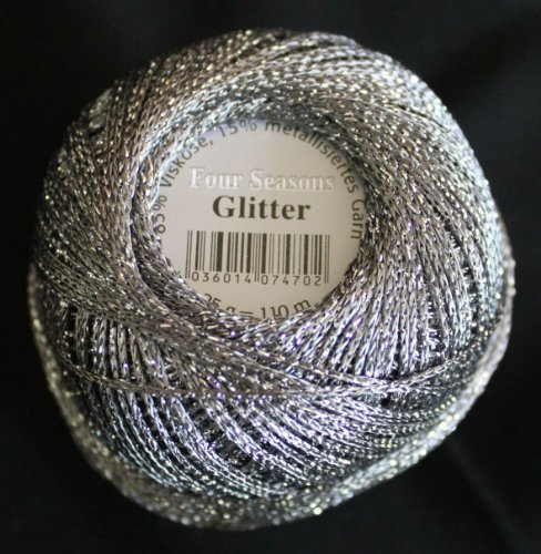 Filo per uncinetto effetto glitter con fibre metalliche.