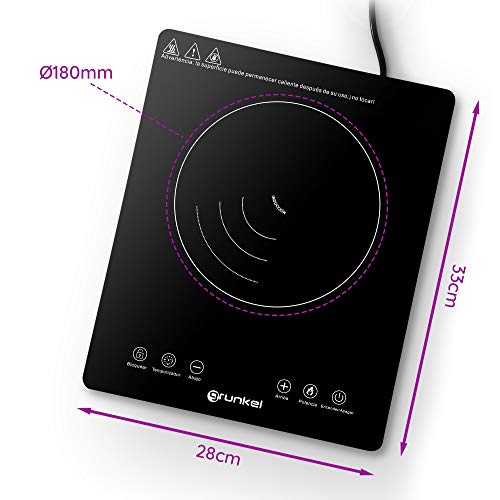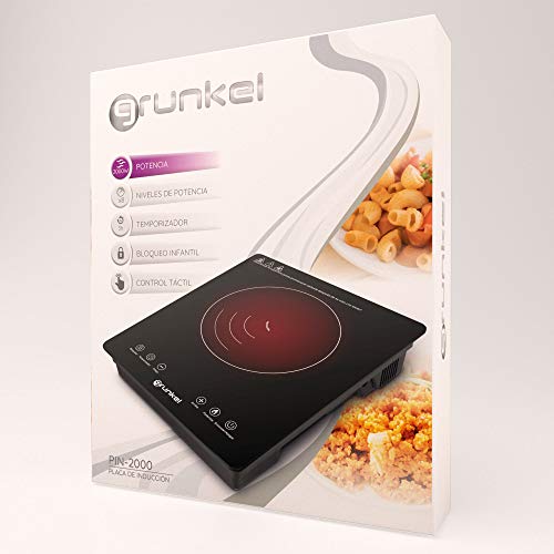 Grunkel - PIN-2000 - Piastra a induzione portatile con controlli tattili e 8 livelli di potenza. spegnimento di sicurezza e blocco infantile - 2000 W - nero