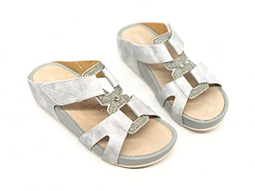 Grunland DIRA CI2883-C9 Argento Multi n° 38 Ciabatta con Zeppa 5 cm