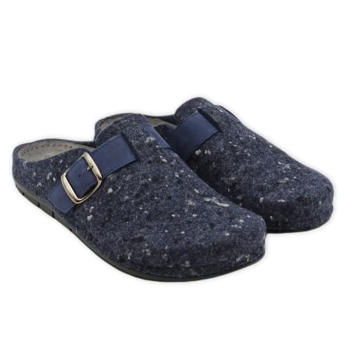 Grunland SIRU CI2443 59 BLU Ciabatte Pantofole Uomo Invernali Feltro Lana cotta Sottopiede pelle Fibbia regolabile (numeric_43)