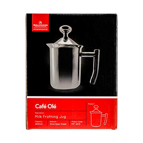 Grunwerg - Schiumatore per latte in acciaio inox caraffa, 400 ml, MF-400