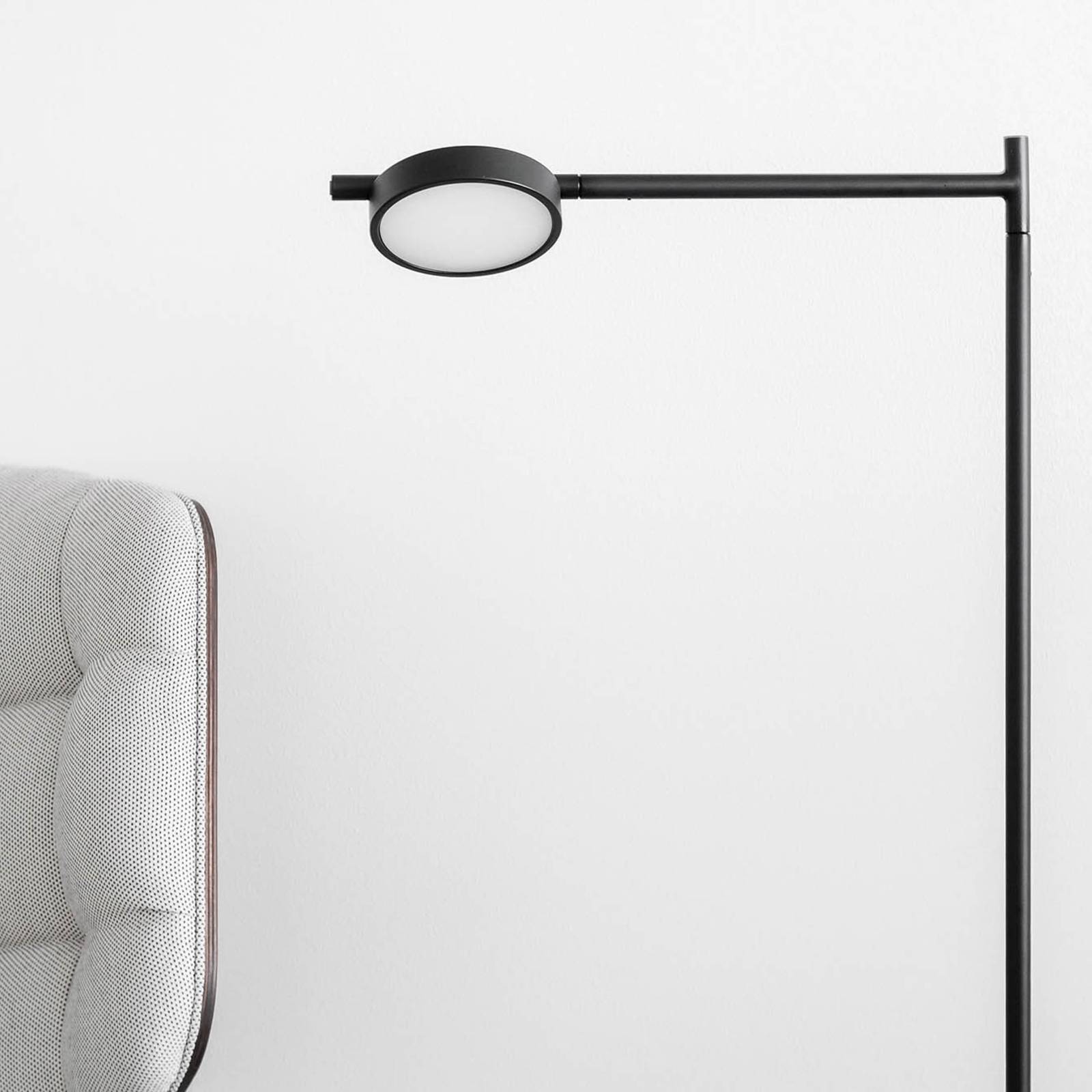 Igram - lampada da tavolo e tavolino sottile a LED con ripiano in vetro La lampada da terra Igram dell'azienda croata GRUPA è moderna ed elegante. Il nome corrisponde all'espressione "io gioco" nella sua lingua nazionale. Igram offre infatti una sapiente simbiosi tra design espressivo e luce funzionale, un tavolino e una lampada da terra. La base è costituita da una struttura in acciaio nero opaco, dalle tre gambe al sottile supporto e al braccio orizzontale della lampada. Quest'ultima può essere ruotata tutt'intorno e contiene una testa rotonda in alluminio, dotata di una sorgente luminosa a LED bianco caldo e di una copertura in PMMA. La testa può essere ruotata di 180° in modo da ottenere un'illuminazione diretta o indiretta a seconda delle esigenze. Inoltre, è presente un dimmer a sfioramento per il controllo dell'emissione luminosa, integrato nel braccio orizzontale. Il ripiano rotondo del tavolo è in vetro temperato. Se necessario,