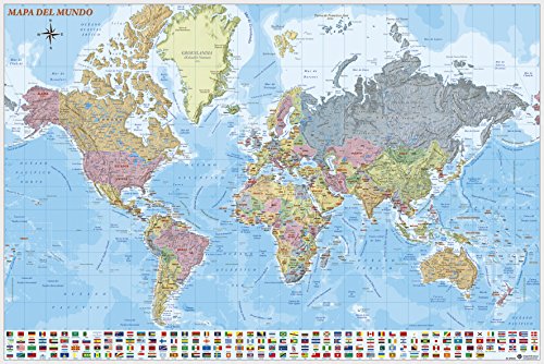 Grupo Erik Editores GPE 4734 Mappa Fisica e Politica del Mondo Poster Stampa - 61 x 91.5 cm