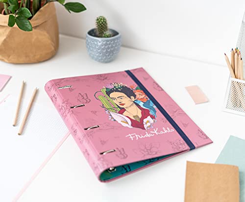 Grupo Erik: Raccoglitore A4 Frida Kahlo, Raccoglitore a 4 anelli con elastico e copertina rigida in cartone, 32 x 27,5 cm, Cartella Portadocumenti A4, Frida Kahlo Gadget