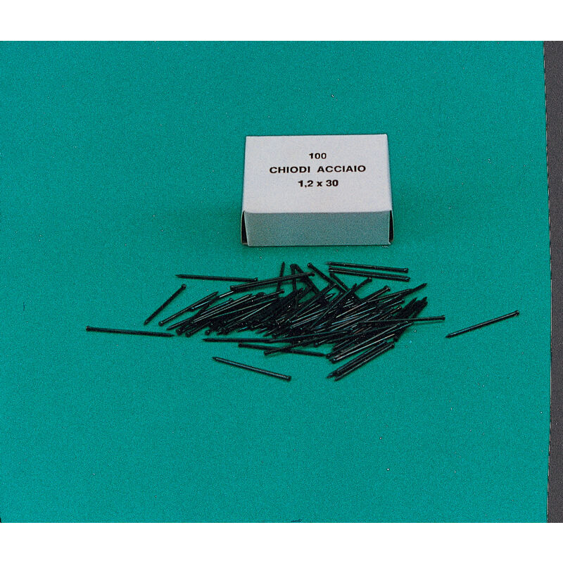 In acciaio. Testa a gruppino. Diametro 1,2 mm Lunghezza 30 mm Confezione da 100 pezzi