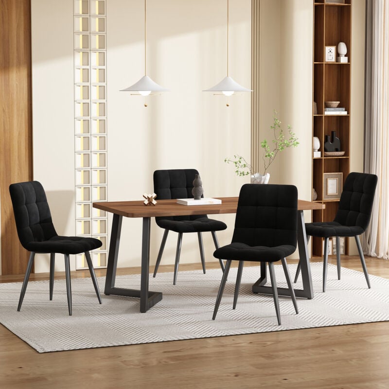 Informazioni sul prodotto Dimensioni del prodotto 1 sedia: 44*41*86 1 tavolo da pranzo: 117*68*75 Peso del prodotto 5 kg/1 sedia, 11 kg/1 tavolo da pranzo Trasporto del prodotto 150 kg/1 sedia, 50 kg/1 tavolo da pranzo Imballaggio elenco Pacchetto-1: 4 sedie, viti e strumenti necessari Pacchetto 2: 1 tavolo da pranzo, viti e strumenti necessari Numero di colli 2 Materiale velluto, spugna, metallo Assemblaggio richiesto Sì Paese d'origine Cina Eccellente comfort di seduta: Le sedie sono dotate di un rivestimento morbido e vellutato, con una larghezza della seduta di 44 cm e una profondità della seduta di 41 cm, per garantire il massimo comfort e un sostegno ottimale. Il tessuto in velluto morbido e traspirante ti regala una sorta di riposo paradisiaco. Gambe in metallo stabili e durevoli: le sedie sono dotate di gambe in metallo nero che forniscono un supporto stabile e offrono un ambiente da pranzo durevole. Queste sedie non sono solo comode ma anche la perfetta combinazione di