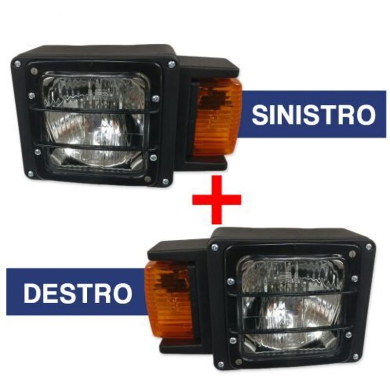 FANALE PROIETTORE ANTERIORE DESTRO + SINISTRO Proiettore asimmetrico destro e sinistro con freccia anterolaterale 235x143 mm. Interasse di fissaggio 60 mm con fori 8.5 mm, lampadine 12V incluse. Fissaggio: interasse di fissaggio 60 mm con fori 8.5 mm. Connettore: connetore Deutsch, CE. Posto sul retro a 12V. Lato: Dx + Sx Luci: Abbagliante e anabbagliante, posizione e indicatore di direzione.