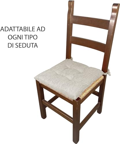 Il Gruppone Passione Casa Set 4/6 Cuscini Sedia Cucina Effetto Lino Lacci Cuscino 4 Punti Comodi Prodotto Italiano 40 x 40 in Cotone Imbottiti Spessore 6 Cm Lavorati a Mano - GrigioChiaro - 4 Pezzi