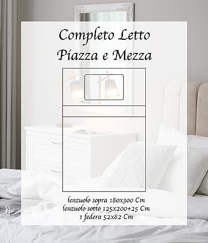 ✔️DIMENSIONI:Misura Singola: Lenzuolo Sotto 90 x 200 + 25 Cm di Angoli Elastici, Lenzuolo Sopra 160 x 300 Cm + 1 Federa 52 x 82 Cm, Misura Piazza Mezza: Lenzuolo Sotto 125 x 200 + 25 Cm di Angoli Elastici, Lenzuolo Sopra 180 x 300 Cm + 1 Federa 52 x 82 Cm Misura Francese: Lenzuolo Sotto 140 x 200 + 25 Cm di Angoli Elastici, Lenzuolo Sopra 200 x 300 Cm + 2 Federe 52 x 82 Cm Misura Matrimoniale: Lenzuolo Sotto 180 x 200 + 25 Cm di Angoli Elastici, Lenzuolo Sopra 245 x 300 Cm + 2 Federe 52 x 82 Cm