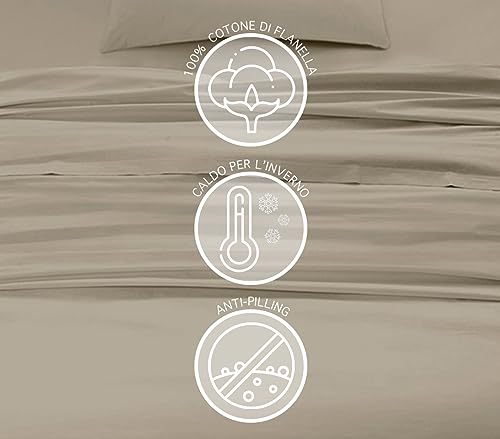 Il Gruppone Passione Casa Set Lenzuola 100% Cotone Di Flanella Completo Letto Made In Italy Anti-Pilling Tinta Unita Lenzuolo Sopra Sotto Federe (Piazza e mezza, Tortora)