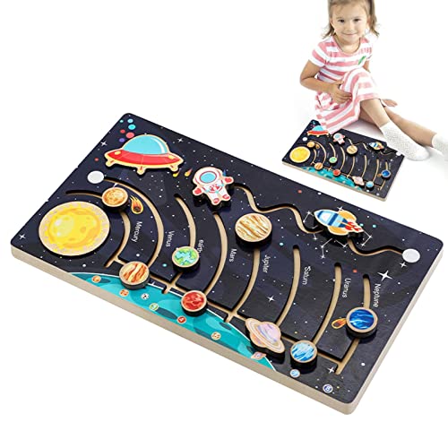 Gruwkue Lavagna Modello con Sistema Solare, Sistema Solare in Legno, Gioco cognitivo, Giocattolo Labirinto per Allenamento di concentrazione, Giocattolo Montessori per Bambini da 3 a 8 Anni