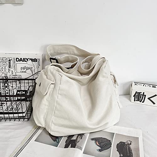 GSenhui Borsa a tracolla da uomo, unisex, in tela, grande, multifunzione, da uomo, vintage, per adolescenti, lavoro, scuola, casual, per tutti i giorni, Weiß