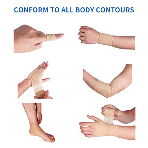 【Ampia Applicazione】- Sicuro e leggero bende autoadesive adatto a molte situazioni come protezione sportiva, pronto soccorso, distorsioni e gonfiore su tutte le parti del corpo umano, come dita, caviglie, polso, gomito, ginocchio, piedi, ecc. Può essere utilizzato anche come bendaggio veterinario