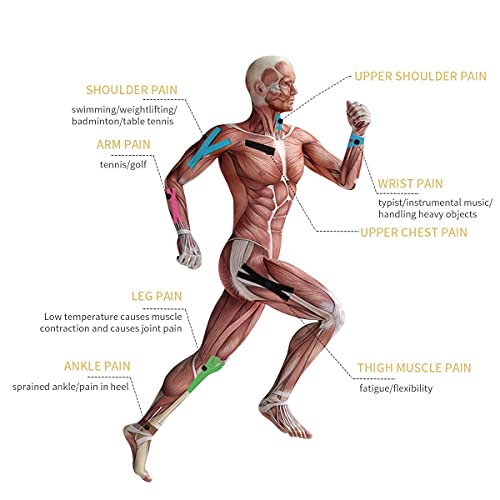 【Buon Supporto】- Cerotto kinesiologico progettato per aiutare a fornire supporto a muscoli e articolazioni senza limitare la gamma di movimento. Aiuta a ridurre la pressione dei tessuti e fornisce supporto muscolare, è utile per promuovere la circolazione sanguigna e alleviare il dolore muscolare velocemente, ridurre efficacemente i danni articolari e muscolari.