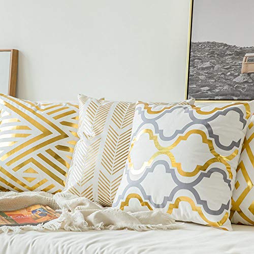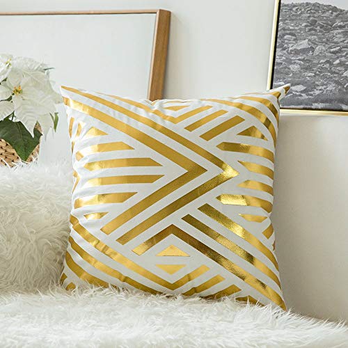 Gspirit federe Striscia dorata 4 pack cuscini per divani Decorativo Cotone copricuscini divano Caso Federa per cuscino 45x45 cm