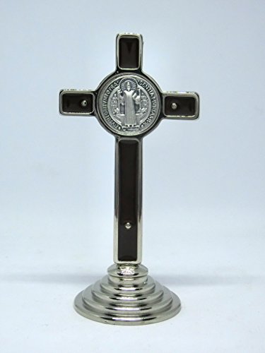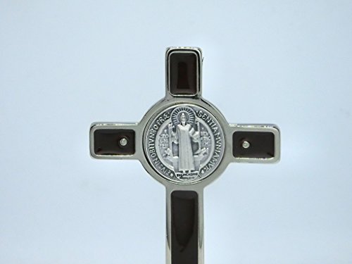GTBITALY 10.008.11 Croce di San Benedetto Argento Marrone smaltato a Mano su Base Tonda Argento