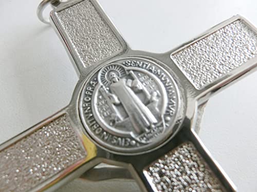 GTBITALY 10.380.11 Croce di San Benedetto con Riga Smaltata a Mano Misura 12 cm Argento con Anello esorcista esorcismo