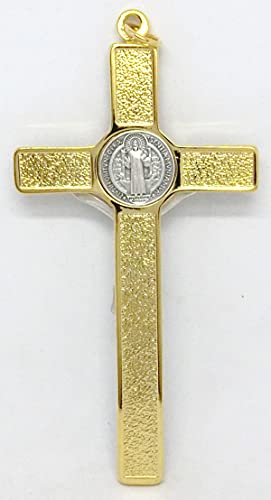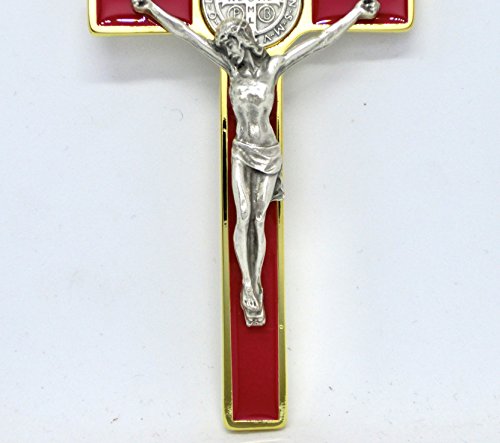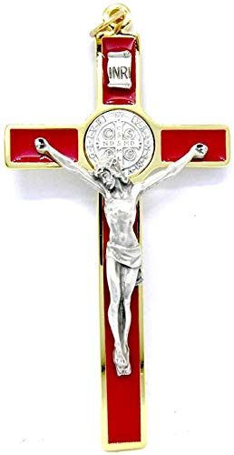 GTBITALY 10.389.21 SS Croce di San Benedetto Rosso Smaltata a Mano Misura 12 cm Oro con Anello esorcista esorcismo