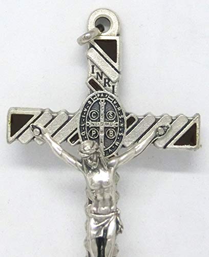 GTBITALY 10.799.31 Marrone Croce di San Benedetto Argento con Smalto con Anello 8 cm esorcista esorcismo