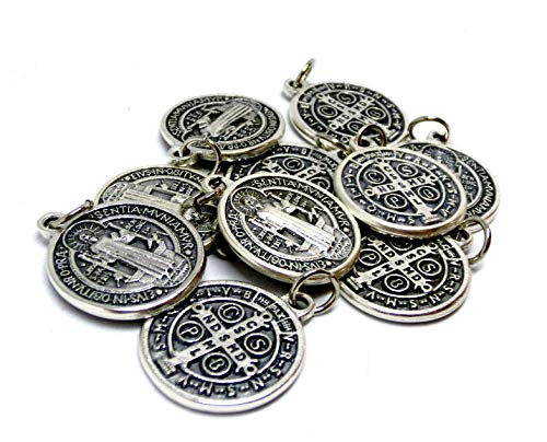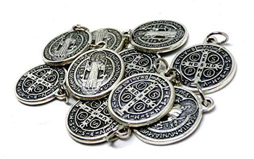 GTBITALY 60.048.30 Medaglia di San Benedetto con Anello Argento 10 Medaglie da 20 mm 2 cm Saint Benedict Esorcista Esorcismo