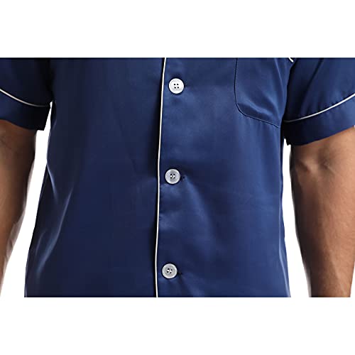 Caratteristiche - Uomo Satin 2 pezzi PJS Set con pantaloni a vita alta a maniche corte e pantaloni elastici e elastici, facile da indossare. Collare di intaglio classico, tasca del torace prestata dettagli sofisticati. Sleepwear con tasche per posizionare il telefono e il portafoglio. Il pigiama di seta satinato presenta il colore del contrasto, ti rende più decorato ..