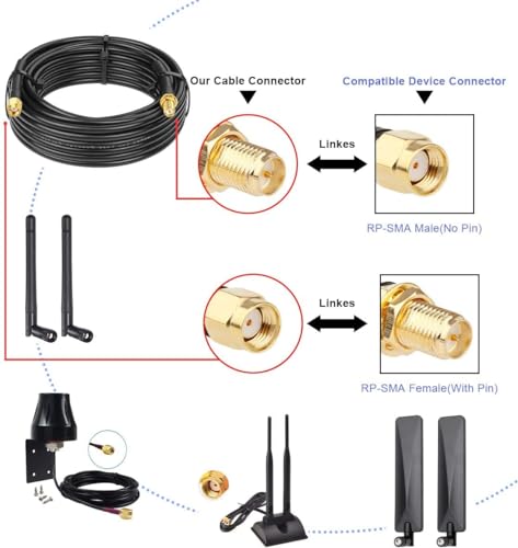★ Contenuto della confezione: 1 prolunga per antenna adattatore RP SMA maschio-femmina da 5 metri.