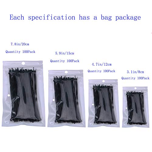 GTIWUNG 400 Pcs Fascette Stringicavo, Fascette per Cablaggio Nero, Heavy Duty Zip Tie, Nylon Plastica di Alta Qualità Cavo Fascette, Fascette Fermacavo Autobloccanti in 4 specifiche(80/120/150/200mm)