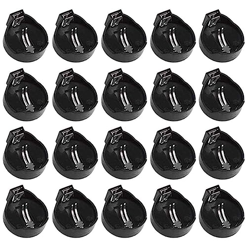 GTIWUNG 20 Pezzi Portable CR2032 CR2025 Porta Batteria Rotondo in Plastica, 3V Portabatterie A Bottone, Generale Coin Batteria a Bottone Presa Adattatore Clip (Nero)