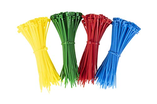 GTSE Confezione mista di 200 fascette per cavi colorate, 300 mm x 3,6 mm, fascette con zip miste 4 colori (rosso, blu, verde, giallo)