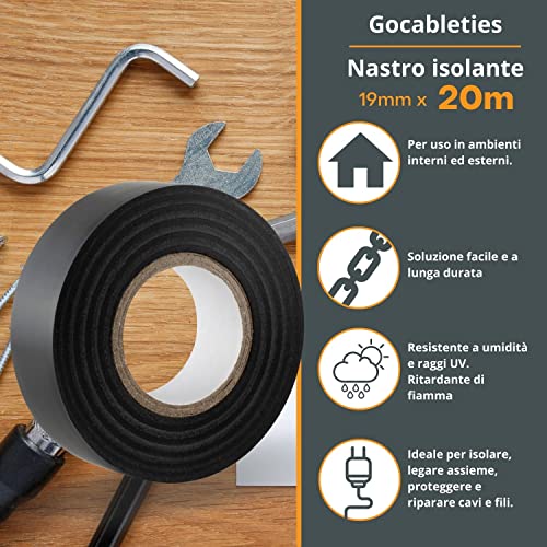 GTSE - Nastro isolante nero - 19 mm x 20 m - Robusto ed autoadesivo - Per proteggere, unire e riparare cavi - 6 rotoli