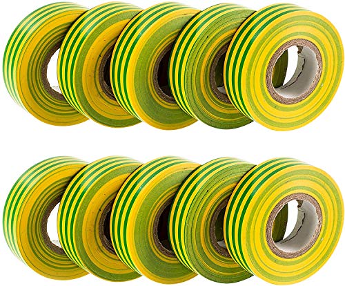 GTSE - Nastro isolante verde / giallo - 19 mm x 20 m - Robusto ed autoadesivo - Per proteggere, unire e riparare cavi - 10 rotoli