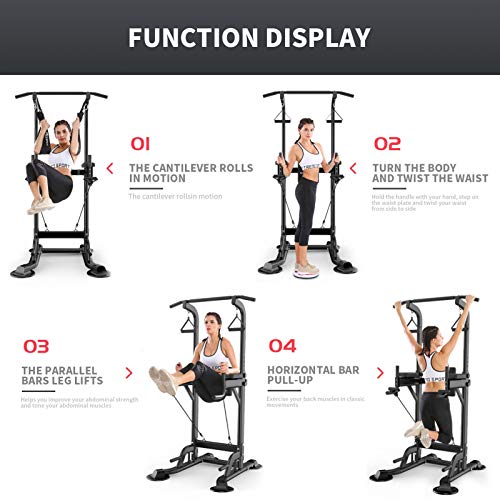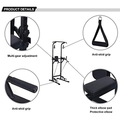 GTYHJUIK Power Tower - Altezza Regolabile (155-230 cm), Stazione Fitness Multifunzione per Flessioni, Pull-up, Sospensioni, Sit-up, ECC, con Stabilità, Palestra di Casablack