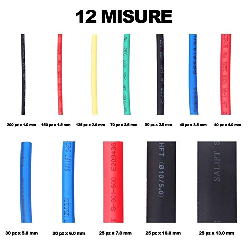 Guaine Termorestringenti 800 Pezzi ALISTAR Set Tubi per Cavi Elettrici Professionale Kit Fai Da Te Attrezzi 12 Taglie 5 Colori Guaine Termoretraibili Terminali Elettrici