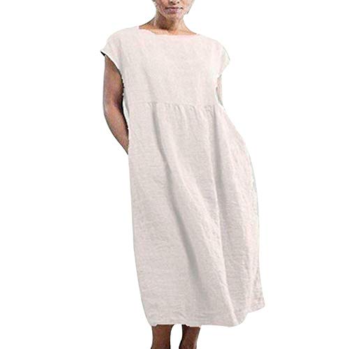 Guajave - Abito da donna in cotone tinta unita, senza maniche, lungo casual bianco XL