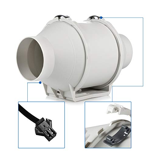 Hon&Guan Aspirazione Ventola d'Aria 100 mm con Timer e Controller Intelligente bagno, tenda di crescita, idrocoltura,ventilazione e ventola di scarico